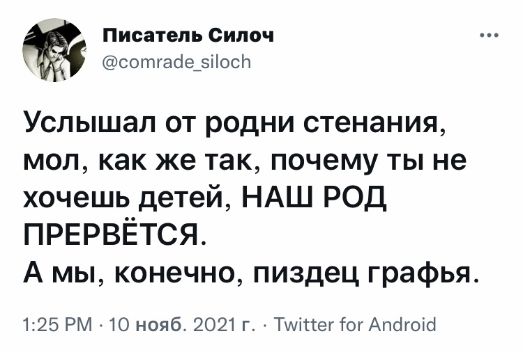 Мы живём в СПб. В нашем доме есть семья из одной республик (не знаю точно какая) но она выходит гулять исключительно вечером, чтобы не было детей других. Реально. Вся "при параде": платье до пяток, платок на пол лица, голова покрыта. И есть пара детей: пацан лет 6-ти и дочка- лет 3. Она их "выгуливает" вечером, с этим проблем нет, всё нормально. Но получилось так, что мы с дитем (ему 7 лет) вышли на эту площадку погулять. И её пацан (нельзя говорить нацию уже?)) Бегает, стреляет из пистолета игрушечного, потом подбежал ко мне и типа стреляет в меня. Так несколько раз, хотя я просто стоял. На вопрос: зачем ты так стреляешь, что такого я сделал? Последовал "гениальный" ответ: мне папа так сказал, что вы плохие и надо вас давить. Ёпт! Вот и "воспитание": с малых лет учат, что мы плохие и нас стрелять нужно, хотя сами живут за наш счёт. Такие дела..