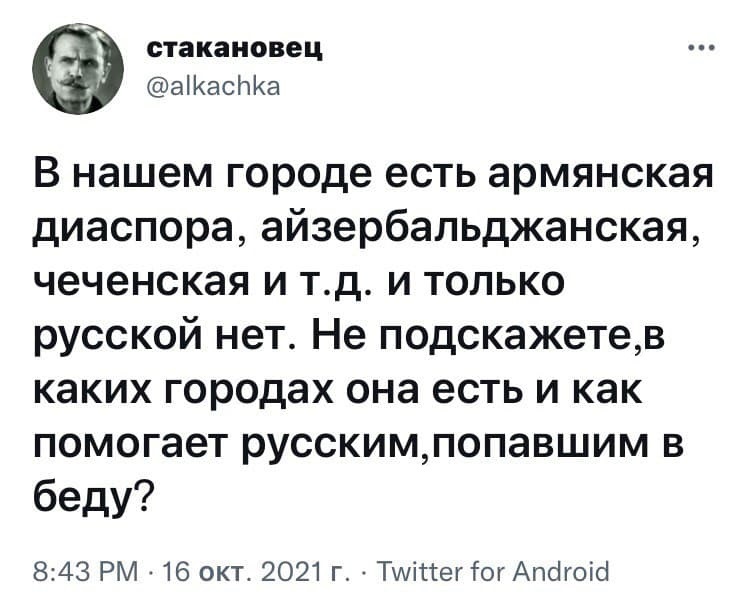 И опять, если бы дело не вышло на уровень Москвы, то даже и этого не было. Этнические диаспоры — это не культурные автономии, а организованные банды, на деле там нет ничего общего с культурой.