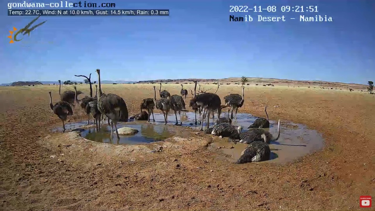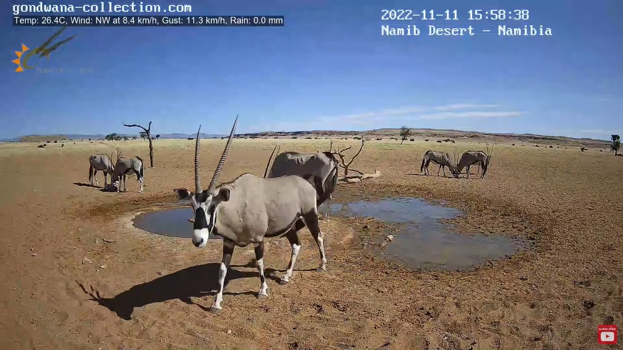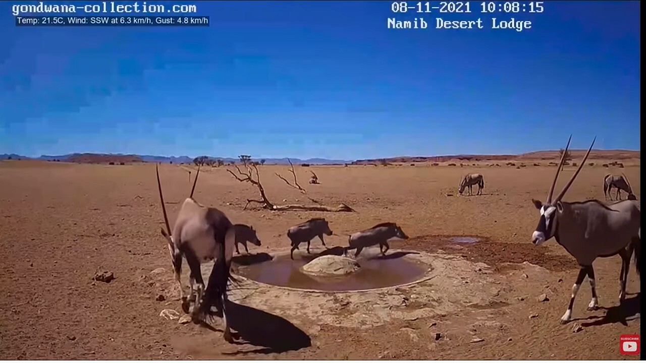Обнаружил, что на Пикабу до сих пор нет (а может плохо искал) упоминания о Live stream in the Namib Desert — прямой видеотрансляции с онлайн-камеры из центра Намибийской пустыни. Чем она отличается от многих других трансляций, спросите вы? Тем, что чуваки установившие камеру придумали простую и гениальную штуку — они пробурили артезианскую скважину, вывели трубу в небольшое углубление на поверхности и поставили насос с датчиком уровня воды, работающие, как я понимаю, от солнечных батарей и аккумуляторов. Естественно, что такой источник постоянно свежей и чистой воды просто не мог оказаться без внимания всего зверья в радиусе нескольких десятков миль. И в течении всего дня в прямом эфире можно наблюдать кучу различной живности, приходящей на водопой. То есть, если запустить трансляцию в произвольный момент времени, не факт что кого-то увидишь. Большую часть дня лужа (так её называют в Вконтакте) пустует. Но вот если оставить видео включенным в фоновом режиме, то удовольствие от наблюдения точно гарантировано. Я так и делаю — когда либо работаю, либо просто туплю за компом запускаю на втором мониторе (можно на телевизоре, у кого он есть) трансляцию и поглядываю туда одним глазком, когда там начинается движуха.