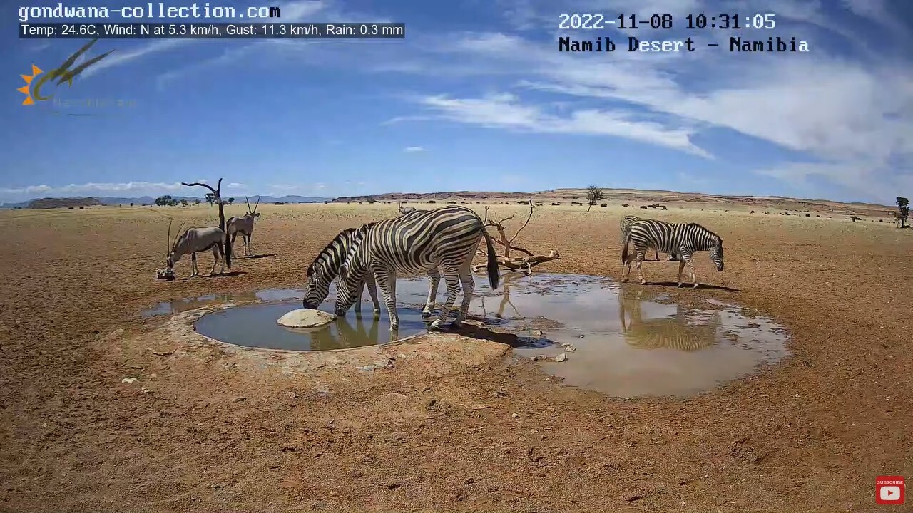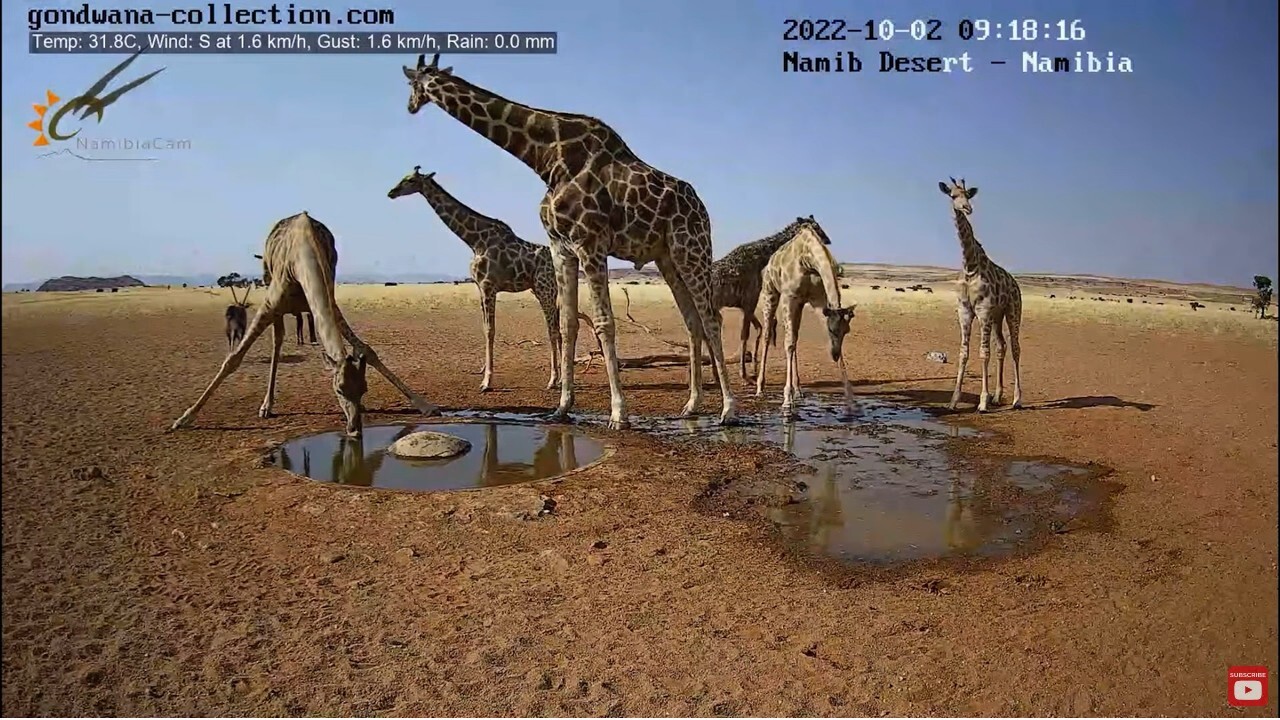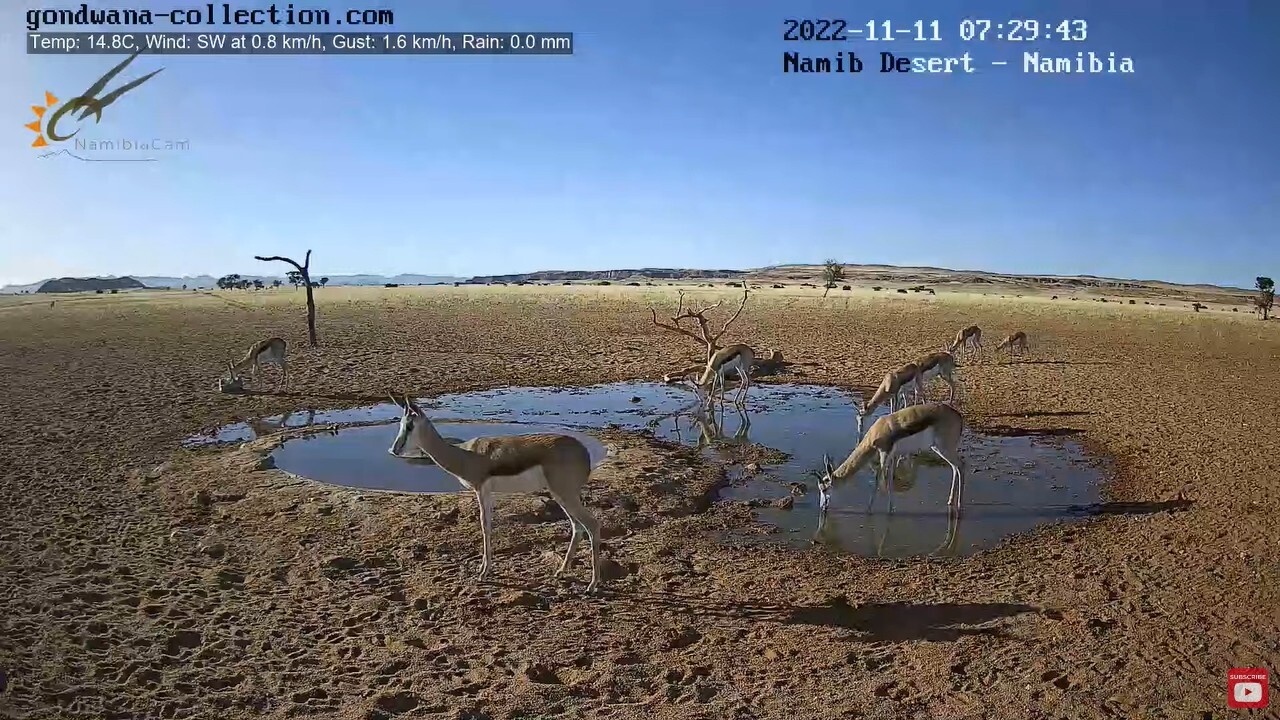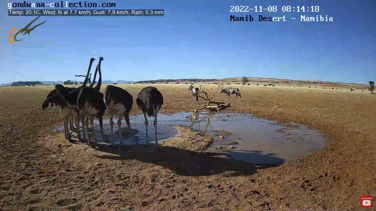 Обнаружил, что на Пикабу до сих пор нет (а может плохо искал) упоминания о Live stream in the Namib Desert — прямой видеотрансляции с онлайн-камеры из центра Намибийской пустыни. Чем она отличается от многих других трансляций, спросите вы? Тем, что чуваки установившие камеру придумали простую и гениальную штуку — они пробурили артезианскую скважину, вывели трубу в небольшое углубление на поверхности и поставили насос с датчиком уровня воды, работающие, как я понимаю, от солнечных батарей и аккумуляторов. Естественно, что такой источник постоянно свежей и чистой воды просто не мог оказаться без внимания всего зверья в радиусе нескольких десятков миль. И в течении всего дня в прямом эфире можно наблюдать кучу различной живности, приходящей на водопой. То есть, если запустить трансляцию в произвольный момент времени, не факт что кого-то увидишь. Большую часть дня лужа (так её называют в Вконтакте) пустует. Но вот если оставить видео включенным в фоновом режиме, то удовольствие от наблюдения точно гарантировано. Я так и делаю — когда либо работаю, либо просто туплю за компом запускаю на втором мониторе (можно на телевизоре, у кого он есть) трансляцию и поглядываю туда одним глазком, когда там начинается движуха.