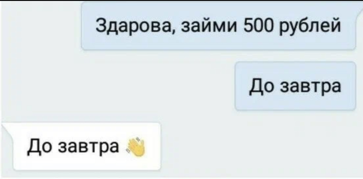 Продал я как-то летом знакомому свой старенький авто. Остаток суммы 15 тыс. он должен был отдать после зарплаты. В итоге отдает 10 тыс. и говорит, что звиняй, мол, но 5 тыс. не отдам - едем в отпуск с семьёй и самим бабки нужны. Я подумал, что он имел ввиду, что отдаст позже после отпуска, а потому не сильно тогда напрягся.