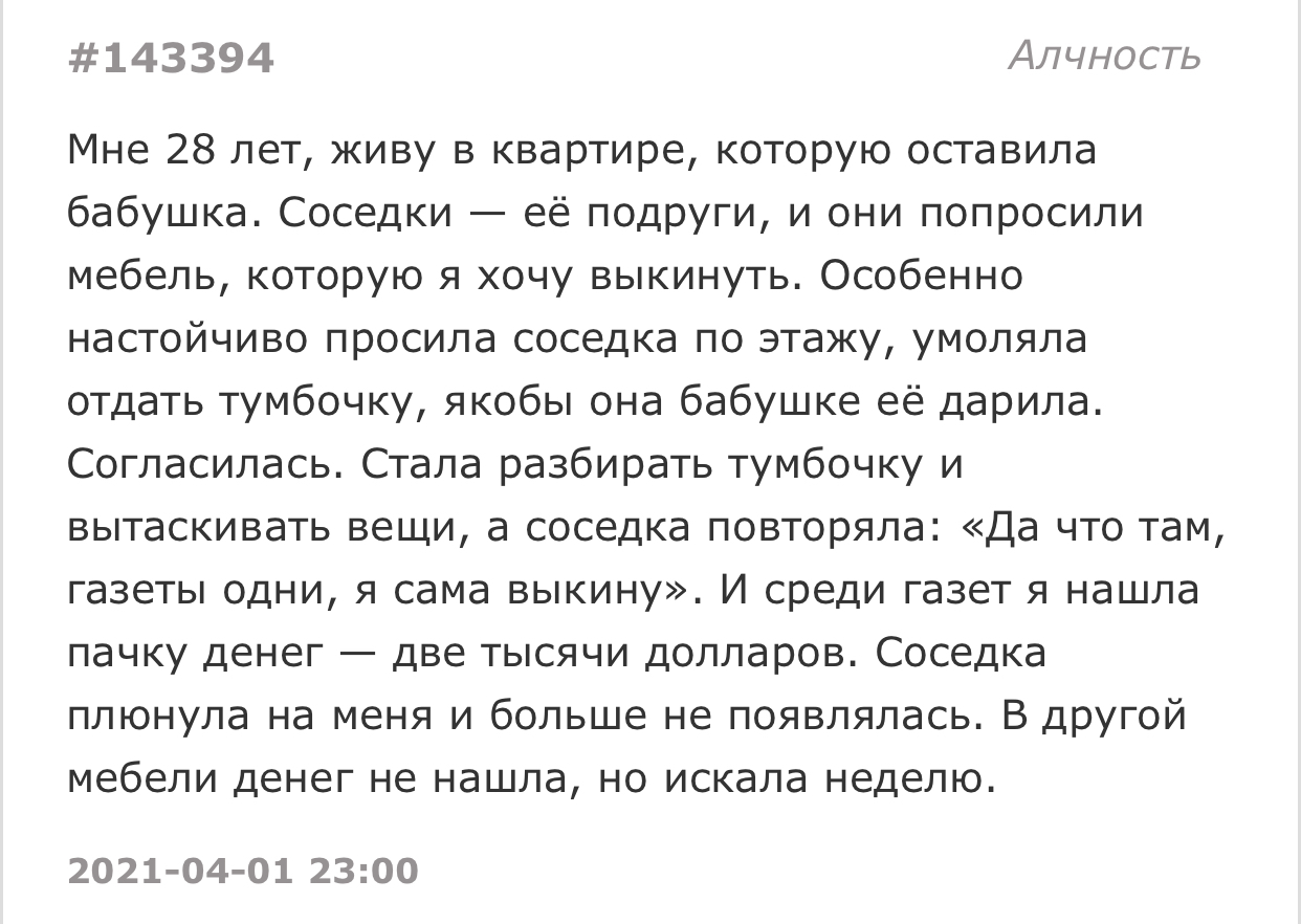 Когда пришло время расплачиваться, она отдала 1500 крупными деньгами, а 400 монетами наскребла по 5 рублей.