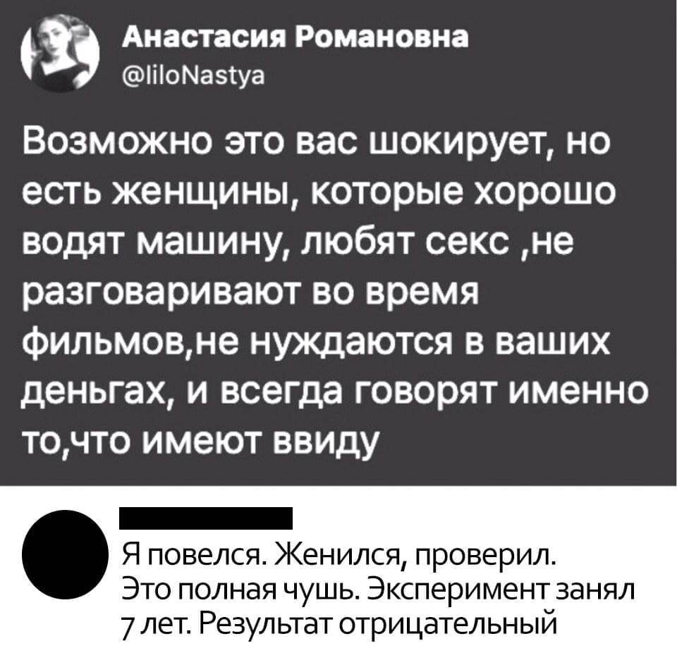 Да, говорит, попадаются дамы, которые хотят миллионеров, фитнес-тренеров. Но это скорее исключения. Так что, если у вас нет женщины, оглянитесь вокруг. И не надо комплексовать по поводу социального положения или внешнего вида. Статистика этого брачного агентства (а другу я верю) указывает на то, что это не имеет большого значения.