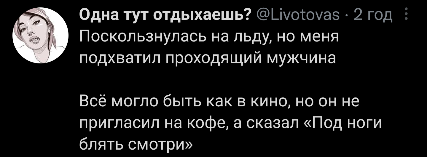Еду с довольной рожей, аудиокнигу слушаю, скорость километров в 30, так как не видно ни фига из-за метели. Вдруг на дороге, прямо по середине, стоит человек. Остановился, впускаю девушку лет 20 в мини-юбке, свитере, колготках и сапожках и без шапки. Охренел полностью от такого зрелища.