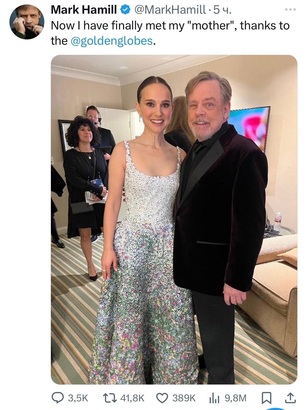 Марк Хэмилл поделится совместной фотографией с Натали Портман: