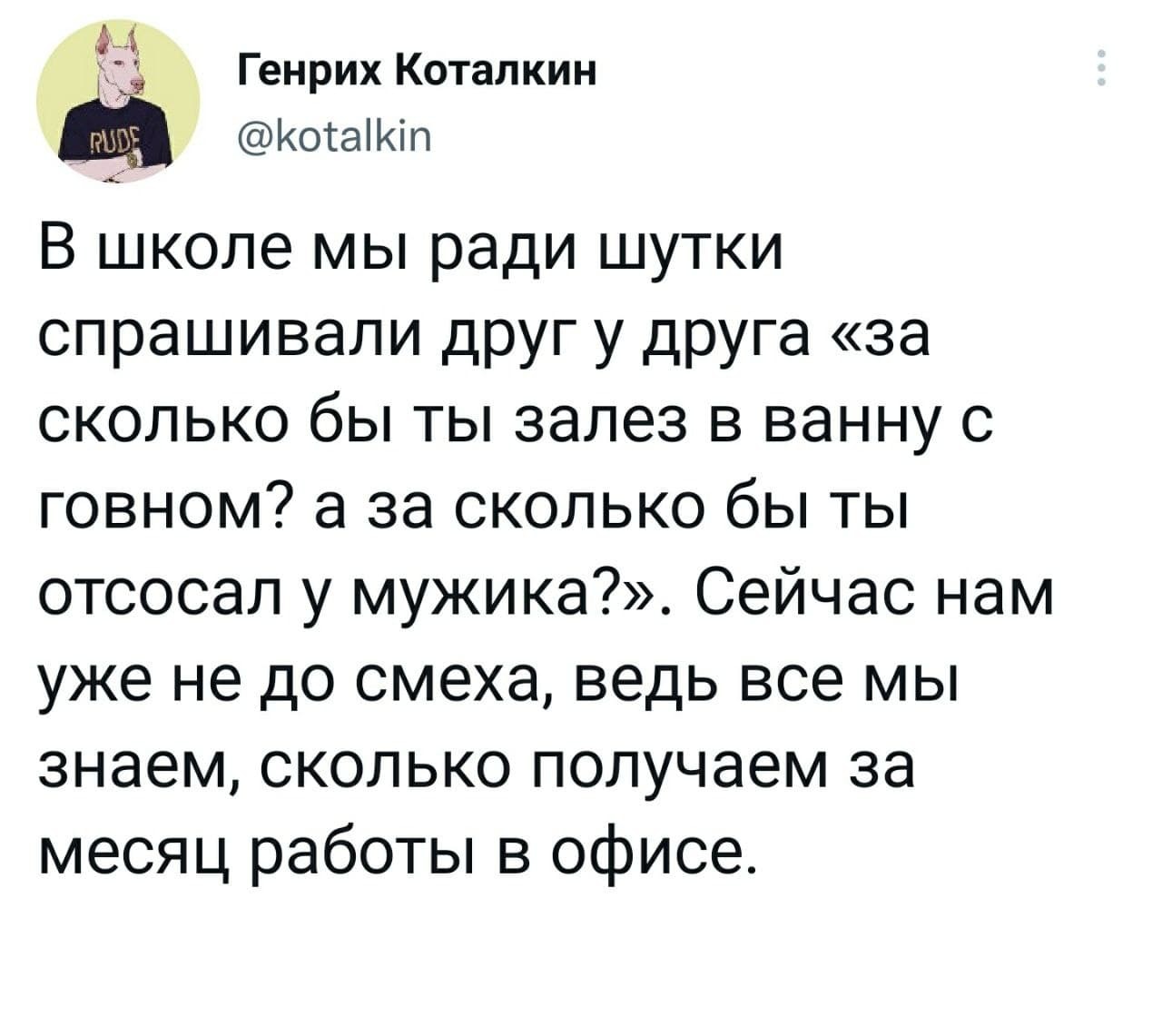 Видел сегодня девочку, которая умоляла на детской площадке папу простить её за то, что рассказала маме о купленном им пиве во время прогулки. А папа сидел в песочнице и говорил, что останется жить здесь и домой больше с такой вредной дочкой не пойдёт.