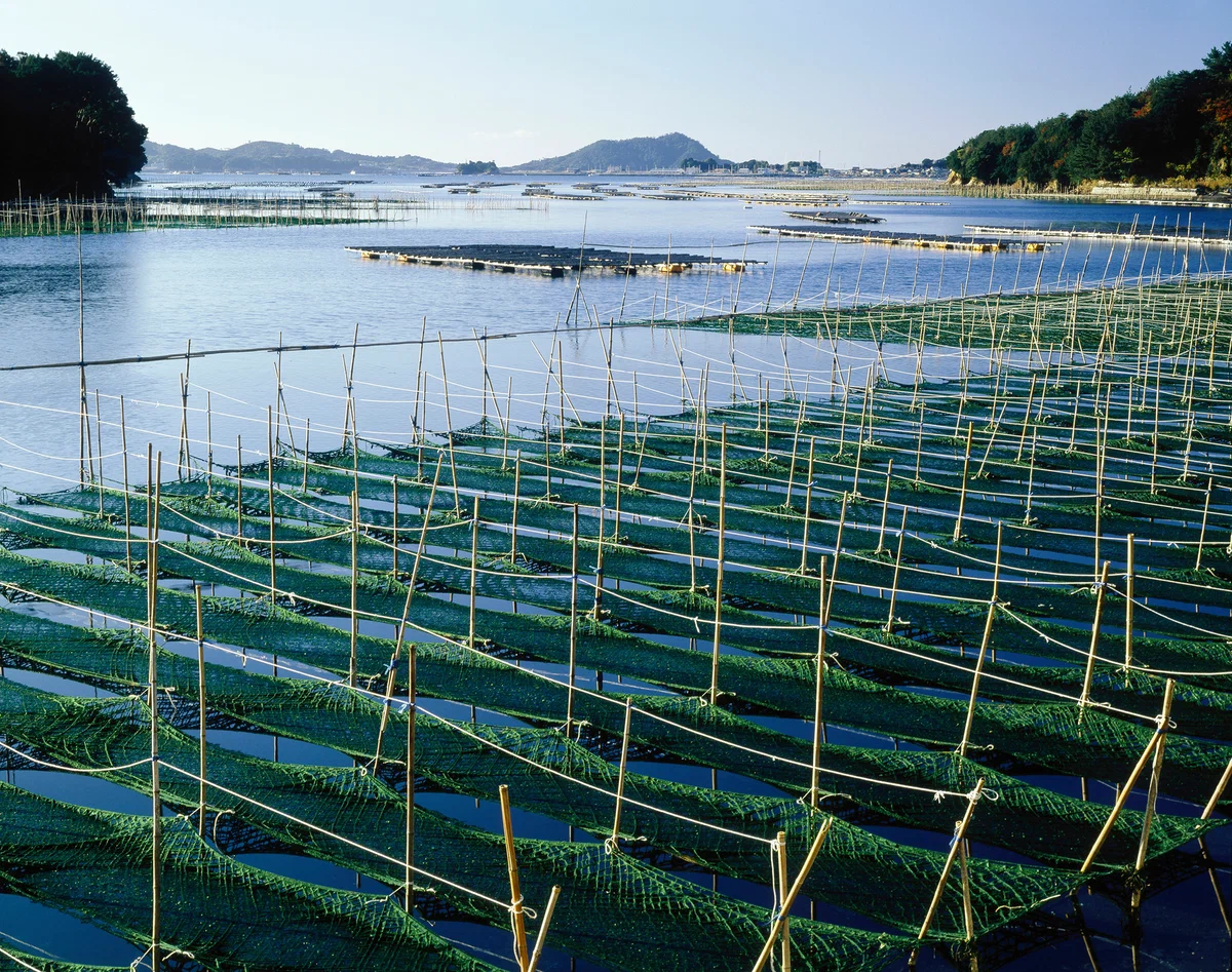 Каждый год фермеры втыкали бамбуковые шесты в дно, тянули между ними сетки и садились ждать у моря... но не погоды. Ждали они урожай так называемой «травы счастливчика». Это растение называли так, потому что в процессе возделывания и добычи все зависело исключительно от удачи. Был не очень большой шанс, что на этих шестах появятся тонкие нитки, потом они, если повезёт, превращались в длинные зелёные полотнища. После этого полотнища аккуратно снимались, сушились и в результате становилось тем, что японцы называют нори. Да, тем самым нори, в которые японцы заворачивают все что нашли неподалеку и которые вместе с рыбой и рисом являются важнейшим столпом японской кухни. По сути, это буквально второй хлеб для Страны Восходящего Солнца.