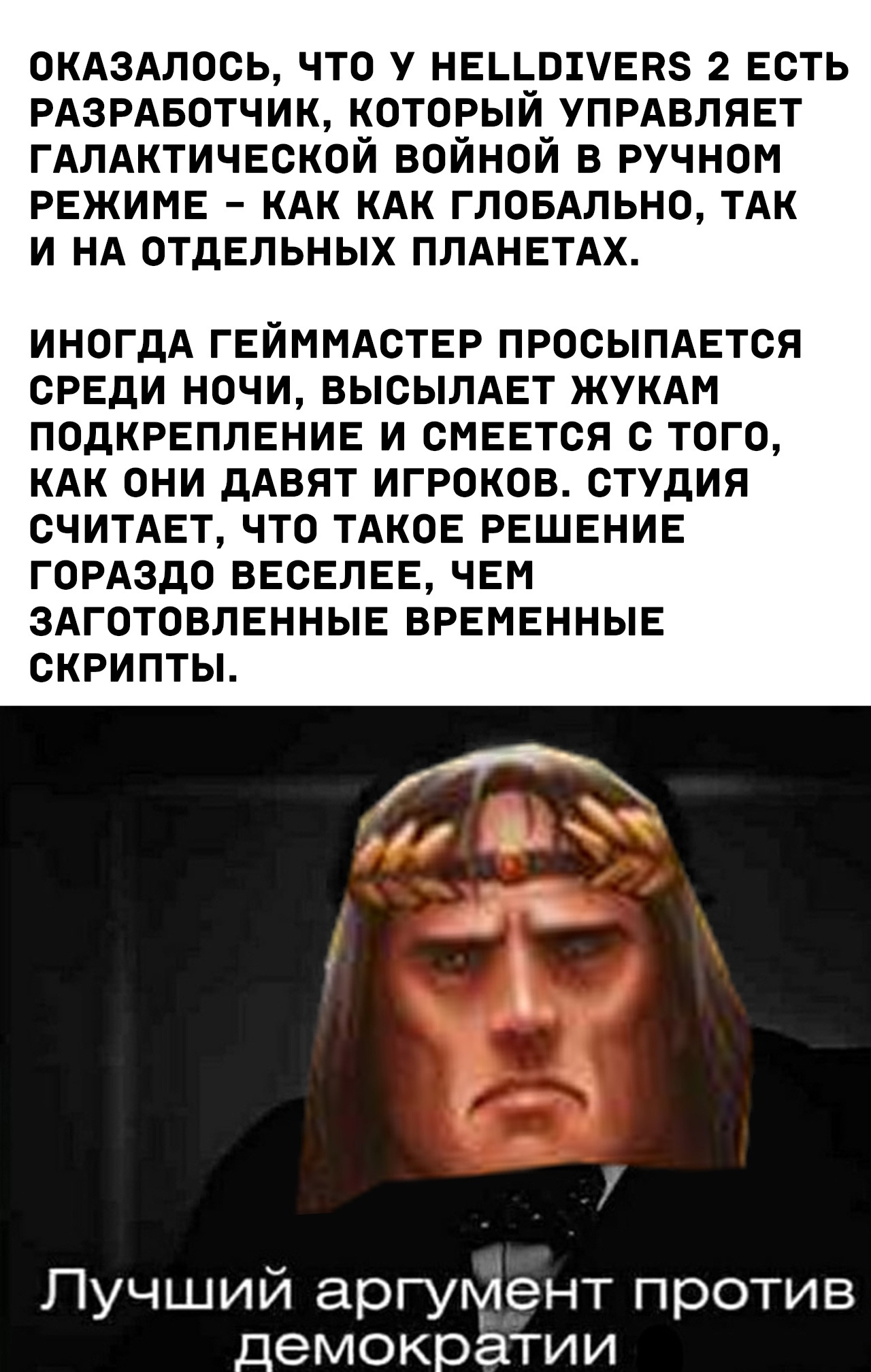 «Виталий Борисович, конечно, проявил недопустимый уровень самодеятельности в этом вопросе, – говорит завуч школы, где произошёл инцидент. – Он продвигал весьма сомнительные, можно даже сказать, еретические тезисы. Например, допускал версию о том, что Магнус на самом деле не предавал. В то время как Инквизиция и Экклезиархия вполне однозначно осуждают его действия на Просперо и считают предателем на службе Тзинча. Мы в настоящее время ведём консультации с гороно на предмет того, сможет ли человек со столь сомнительными идеями оставаться учителем, или ему стоит смыть свою вину кровью в штрафбате».