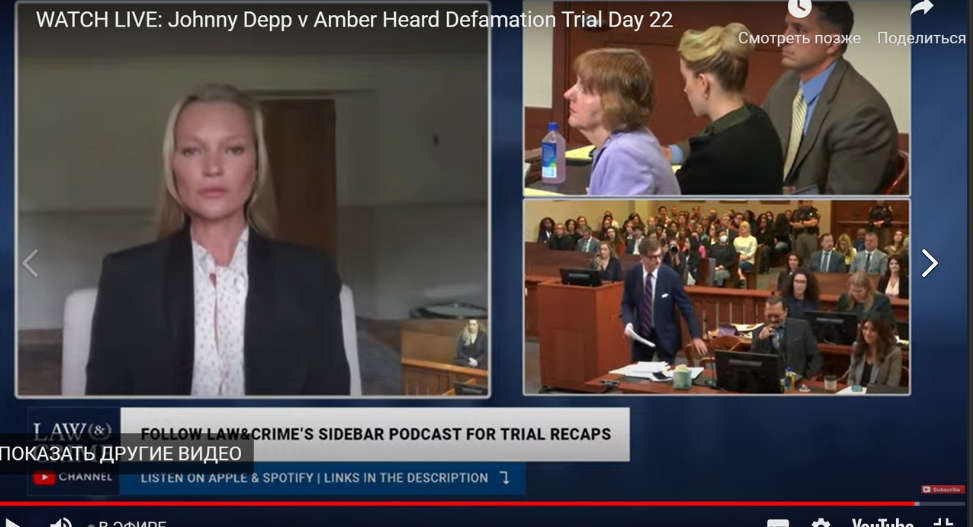 Первым свидетелем сегодня стала Кейт Мосс, она выступила в суде. Они с Джонни встречались с 1993 по 1998 годы. Адвокат Джонни спросил, что было во время их отдыха на Ямайке. Кейт рассказала, что в один из дней случился шторм, Кейт подскользнулась на лестнице и упала на спину, ей было очень больно. Джонни побежал к ней, взял ее на руки и отнес в комнату, позвал помощь.