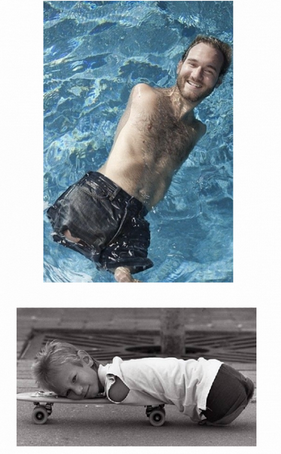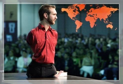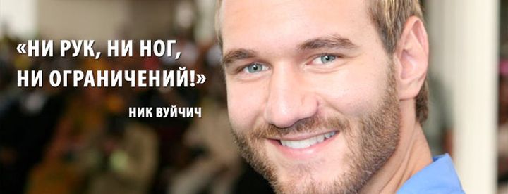 \n\t\t\tНик Вуйчич — родился без рук и без ног. Когда отец увидел, как из утроба его жены появилось плечо без руки он не выдержал и выбежал из родовой. Когда к нему вышел доктор, он кинулся к нему и спросил: «У моего сына нет руки?». Доктор ответил, что у него нет ни рук, ни ног. Мать 4 месяца приходила в себя, не могла держать ребёнка на руках и прикладывать его к груди.