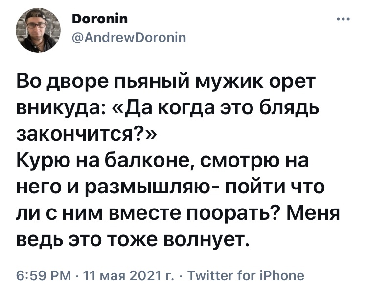 Да нет, говорит, из дома, с левобережки. Юмор, короче, не понял.