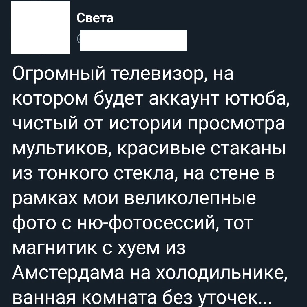Паралельно я подыскиваю квартиру для покупки ( в ипотеку, конечно). Думаю, покупка и последующие за этим хлопоты точно меня отвлекут и не дадут провалиться в депрессию. Ну и ремонт, конечно, куда же без него, родимого, потому что на квартиры хотя бы с минимальным ремонтом цены для меня не подъемные. Так что, скучно не будет.