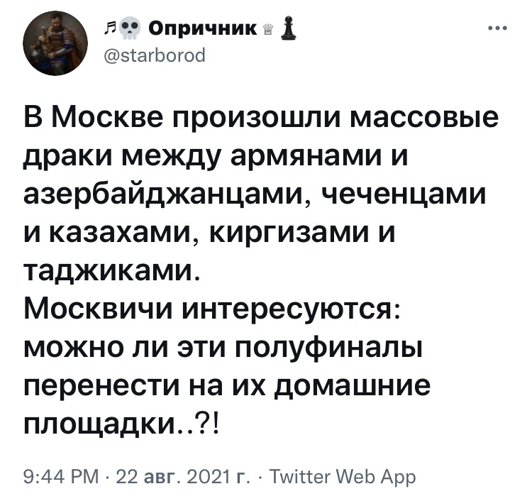 Посмотрите, что творится в метро, особенно вечером. Такое ощущение, что ты уже не в Москве, даже не в России. И посмотрите, как вызывающе они себя ведут. А почему это так? Потому что мы им позволили – и власть, и общество.