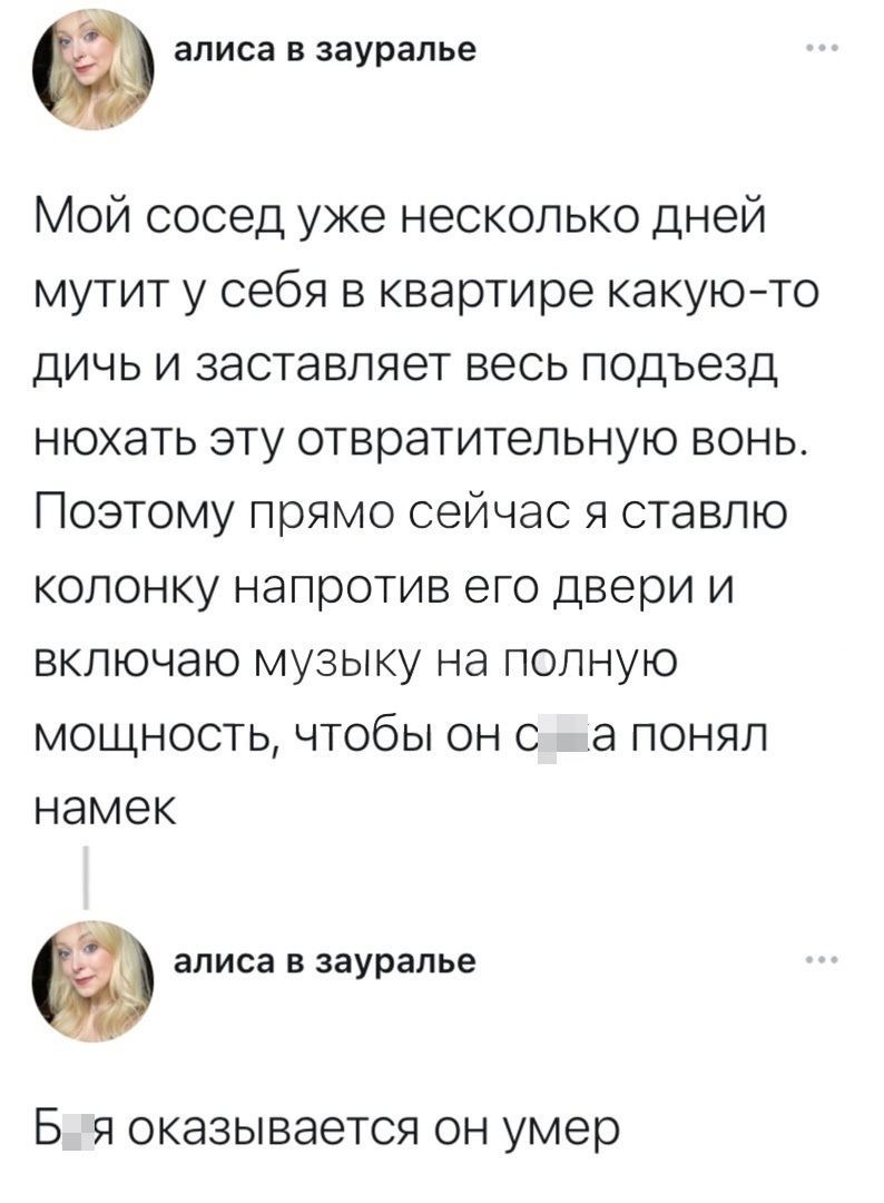 С: да за то, что он такой козёл в 5 утра нас музыкой развлекал. А вы сталкивались с таким?