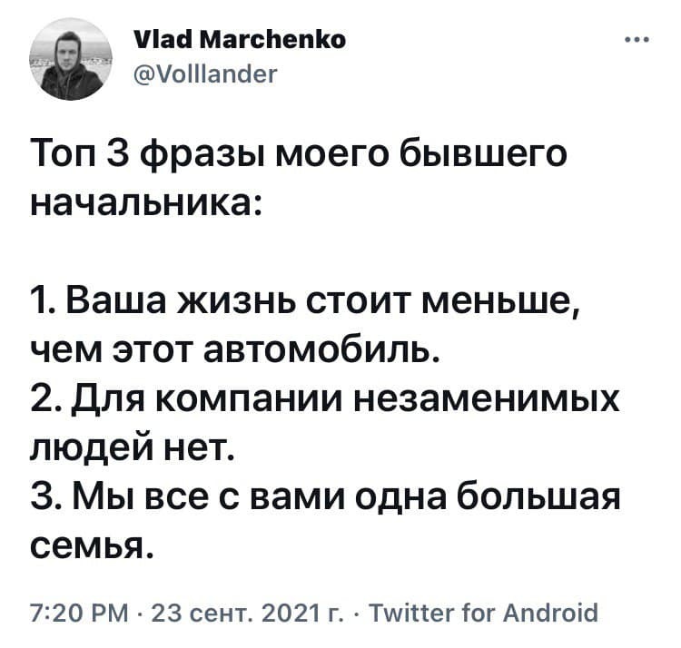 - Сделал нормально все заявки с утра - неважно, одна она была или десять - едь домой или по своим делам, я понимаю, что за эту зарплату тут никто вьебывать не будет.