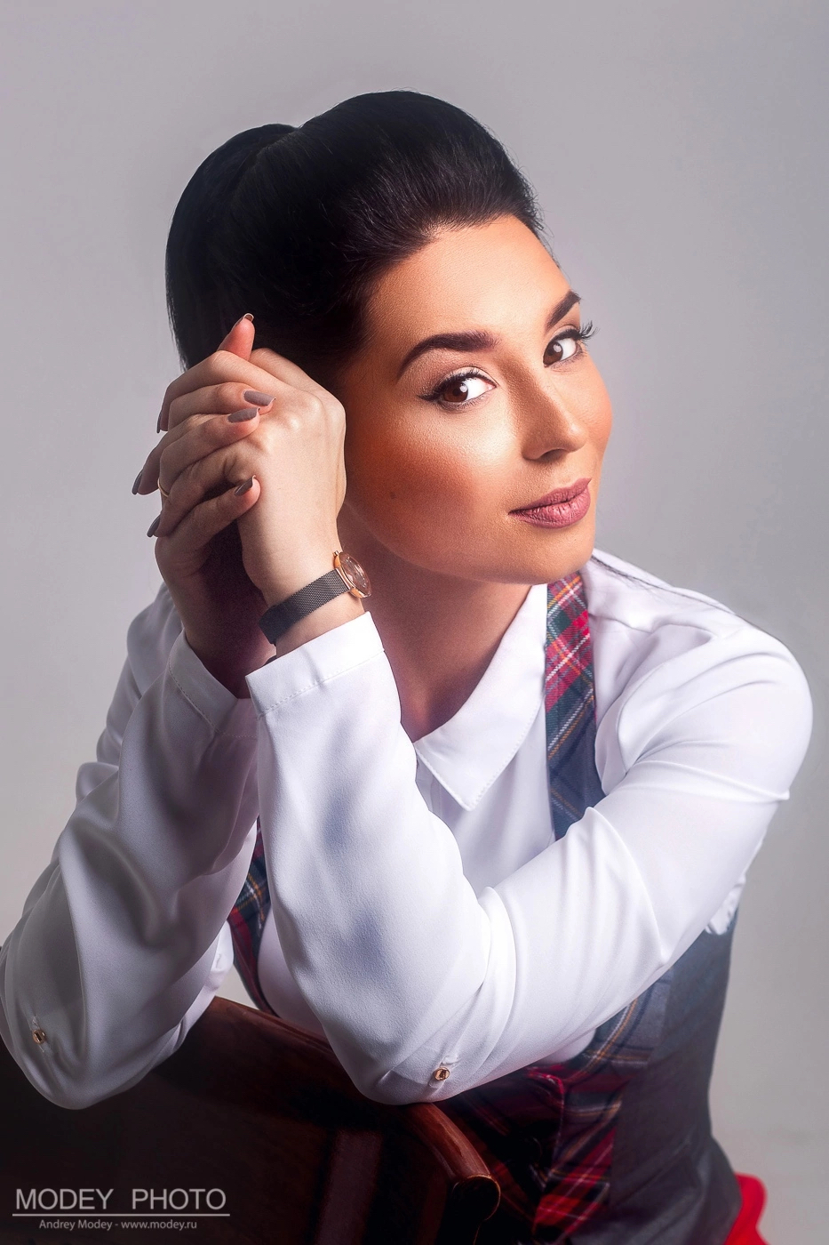Особенного грима здесь нет, в жизни часто ношу подобный пучок и стрелки.