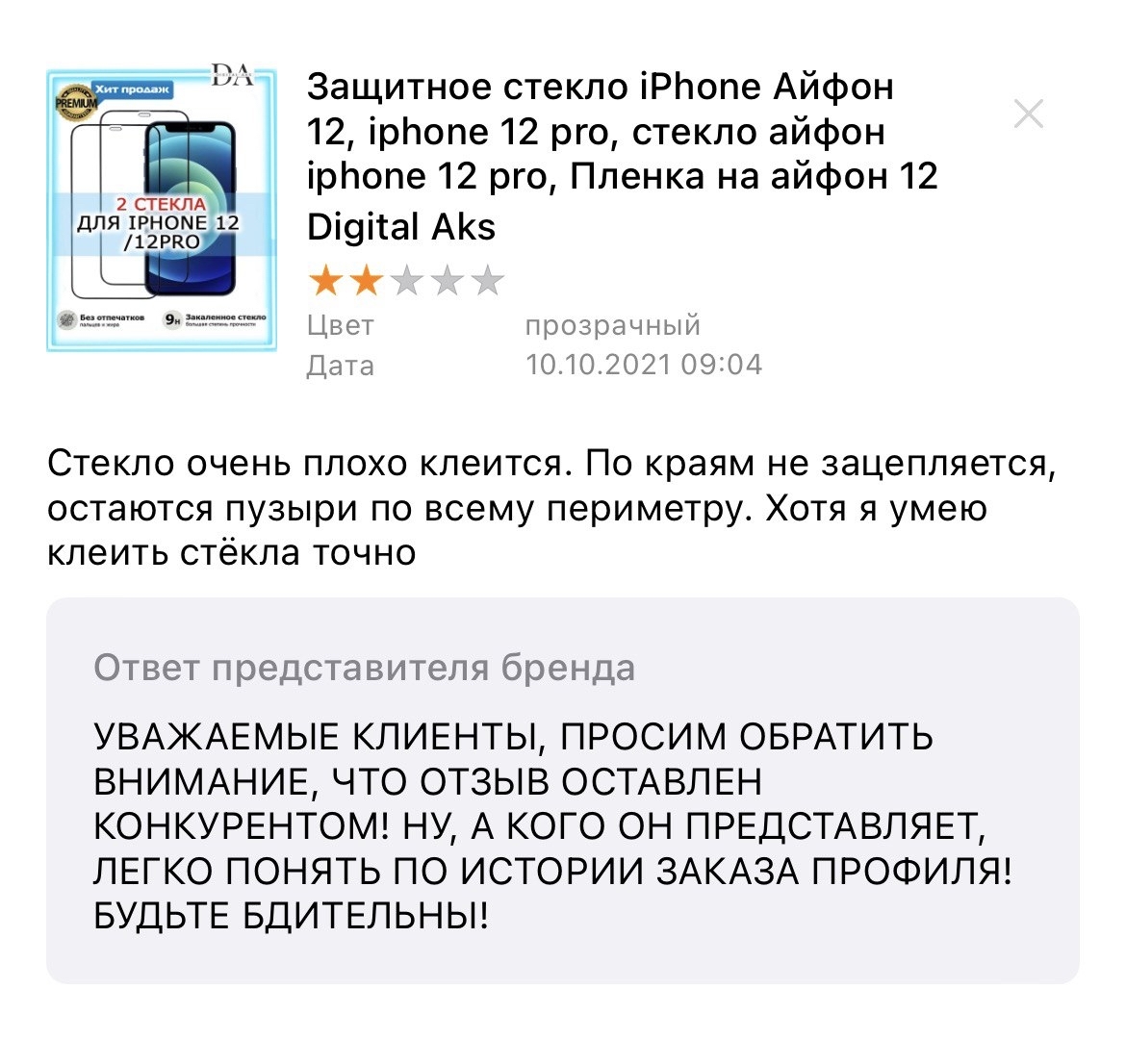Жена заказала себе на Вайлдберриз защитное стекло на айфон, но приклеить его не удалось из-за брака. Оставила отзыв, но продавец удивил ответом:)