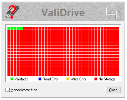 Первым делом запускаю проверку диска программой ValiDrive (https://www.grc.com/validrive.htm).