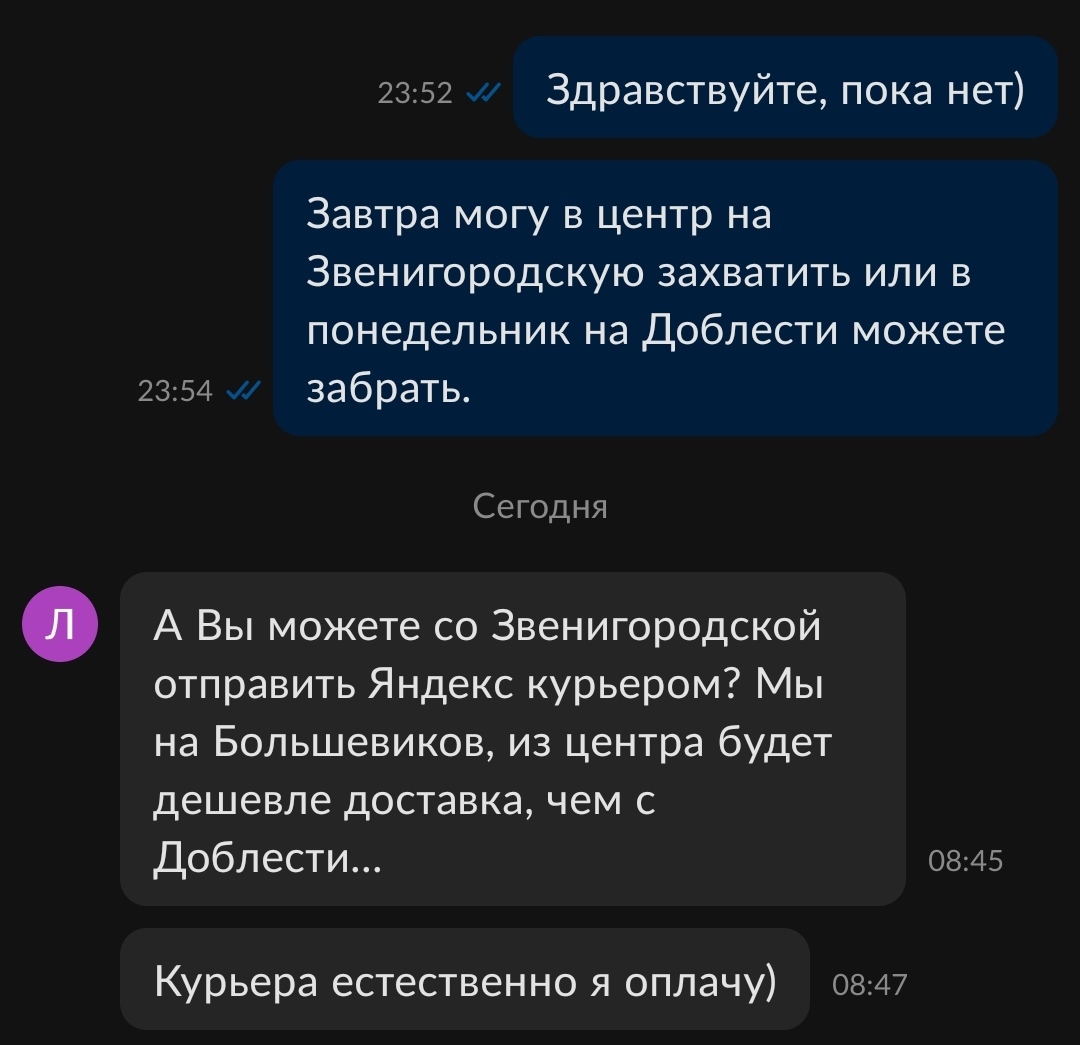 Покупатель вызвал курьера к назначенному мной времени, сразу же отправил деньги на карту, именно столько, сколько и было написано без всяких вопросов, споров и торгов. В общем, если вы узнали себя, то спасибо вам большое за такое хорошее настроение и за избавление от цинизма) Желаю вам и вашему сыну всего самого наилучшего)