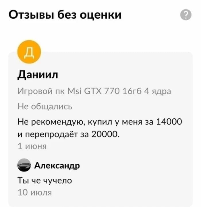 Авито, может я дурак, и чего-то не понимаю? Отзывы ведь нужны чтобы оставить своё впечатление о товаре/продавце? Или можно только хвалебные оставлять?