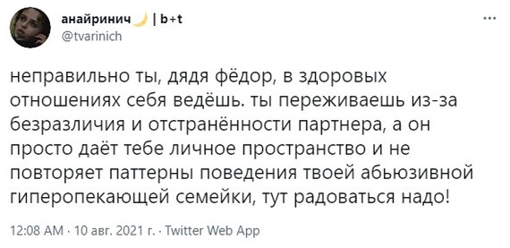 С тех пор прошло десять лет. Они так и живут вместе. Она выучилась, работает, и получает денег раза в 4 больше него.