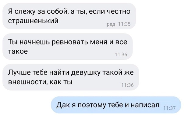Я просто не понимаю этого, если честно. Я даже хрюкнул, как с*ка от развязки этого диалога.