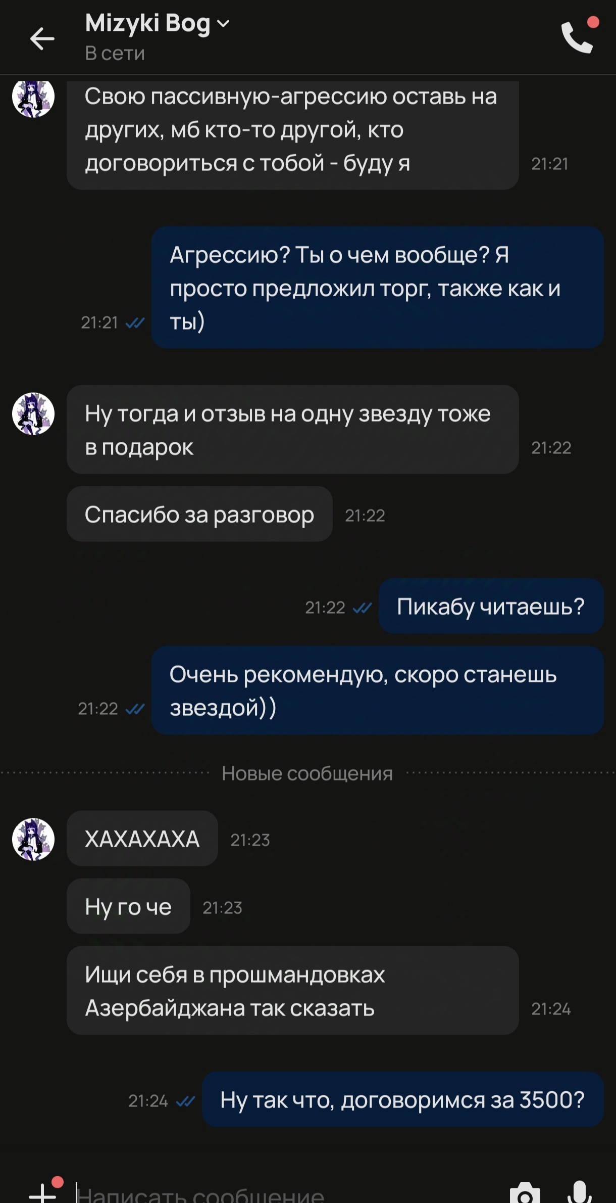 Успеваю быстро снять скриншоты беседы, и мошенник удаляет свои сообщения.