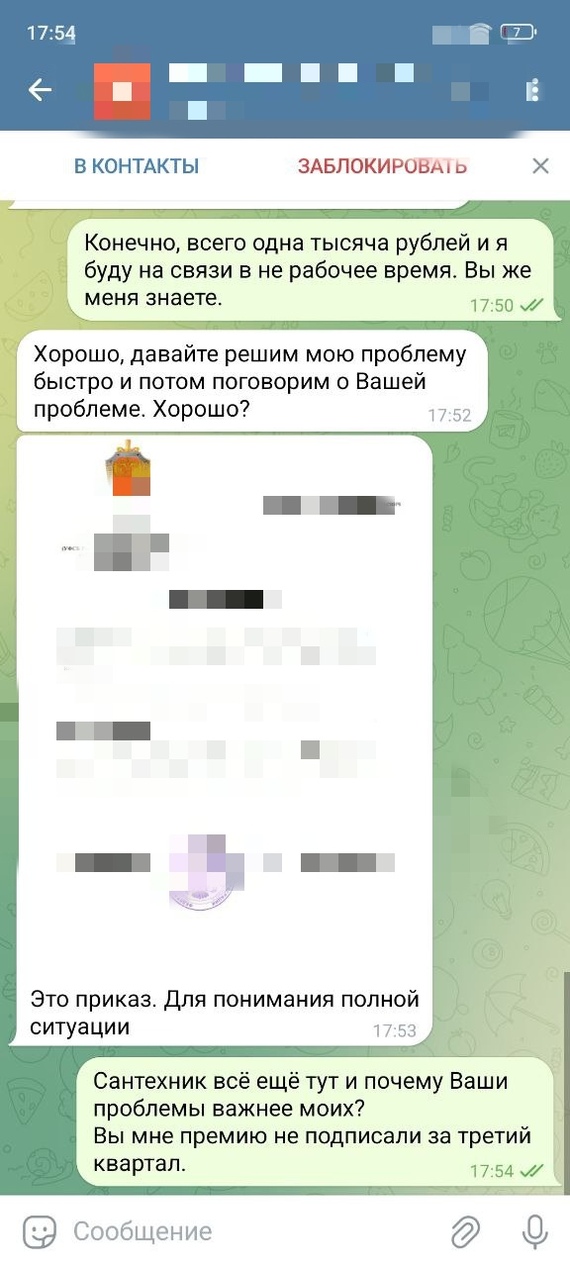 И отправил в поддержку в телегу. Вечером мне приходит смска: