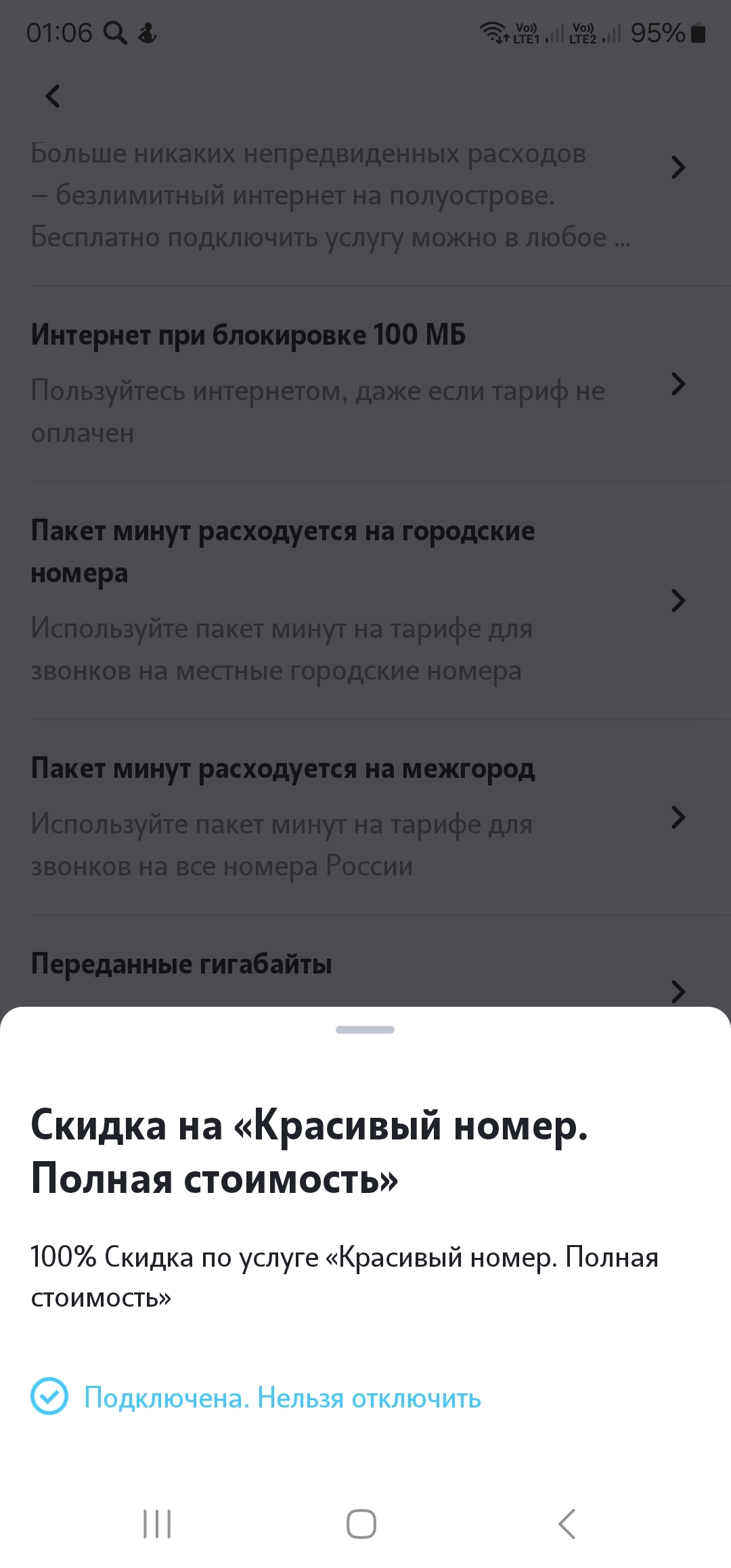 По факту это является ультиматумом и вымогательством. Далее сотрудники теле2 самовольно и без моего согласия в личном кабинете аннулировали заявление на переход к другому оператору. Соответственно и убрали задолженность. На следующий день в личном кабинете добавили услугу "Красивый номер" с 100% скидкой от которой нельзя оказаться и отключить.