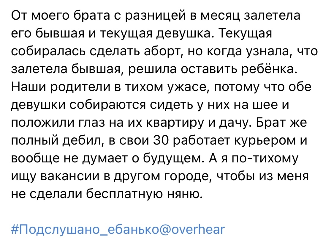 Сильно поругались со старшим братом из-за наследства. От деда досталась однушка в старом доме. Я орала на брата, что у него семья, дети, и это отличный первоначальный взнос, а он с пеной у рта доказывал мне, что как-нибудь справится, и мне, одинокой молодой девушке, эта квартира нужнее. Делить там нечего, сумма сравнительно небольшая. Пришлось надавить на предков, чтобы деньги достались ему. Поняла, что нас воспитали всё-таки правильно. Люблю его, люблю его жену и детей, и не понимаю, как иначе)