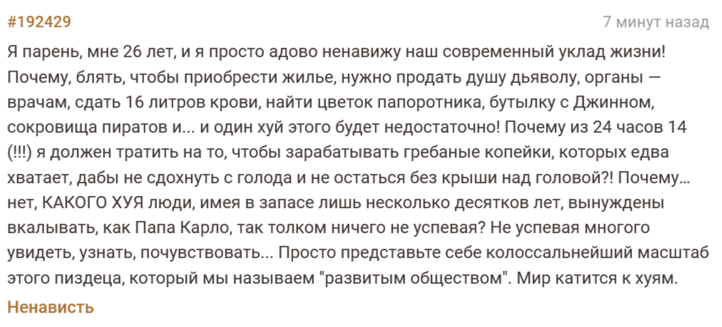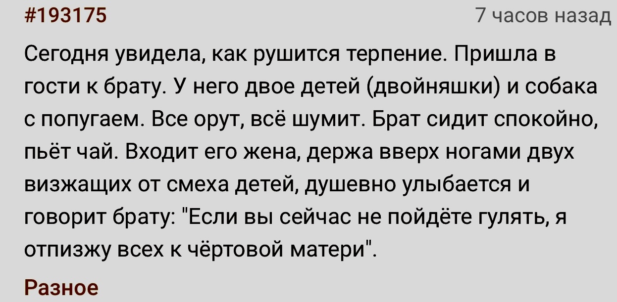 На работе появилась новая начальница нашего отдела. Ее нашёл и поставил на эту должность наш главный директор. Когда-то они вместе учились и работали, она, по его мнению, была хорошей сотрудницей. И сейчас она нассала ему в уши, как много она умеет, сколько у неё опыта и навыков. А на самом деле она — ноль. Не то чтобы не разбирается в тонкостях работы, а не знает азов вообще. Всю свою работу сваливает на других, называя это делегированием. Требует немыслимых результатов, которые не могут быть достигнуты чисто физически. Стучит на нас начальнику. С предыдущей начальницей отдела всё было отлично, она была и профи настоящим, и как человек хорошая, хоть иногда и строгая. У нее всегда можно было отпроситься, например. А у этой нет, сразу начинает обвинять в лени и некомпетентности. У меня сын прилетал с соревнований, отпросилась встретить его, нужно было уйти на полтора часа раньше с работы, но она не отпустила, сказала, что мальчик в 12 лет сам в состоянии вызывать такси и доехать из аэропорта домой. В итоге просила свою сестру встретить его. И таких ситуаций полно. Мы ходили по очереди жаловаться на неё директору, писали служебные записки, коллективные жалобы. Но эта сука сказала, что мы травим её за то, что она наконец-то заставляет нас работать, а мы хотим лениться, как при предыдущей начальнице. Выжила двух человек из нашего коллектива через два месяца работы, привела каких-то своих друзей. Директор доверял ей. Атмосфера в коллективе стала невыносимой, гнетущей. В один прекрасный день наша бывшая коллега написала нам, сказала, что в фирме, где она работает, открывают новый отдел, которым она будет руководить. И пригласила нас туда. На столе у директора лежало 12 заявлений на увольнение. Кто-то взял отпуск с последующим увольнением, кто-то ушёл на больничный. Директор открыл глаза, умолял остаться, но увы. Мы ушли. Дружно. Сейчас дела в фирме плохи, потому что новые сотрудники, приведенные этой дурой, такие же глупые или наглые, не работают нормально. Горжусь нами, ушедшими, и благодарю коллегу, которая нас забрала.