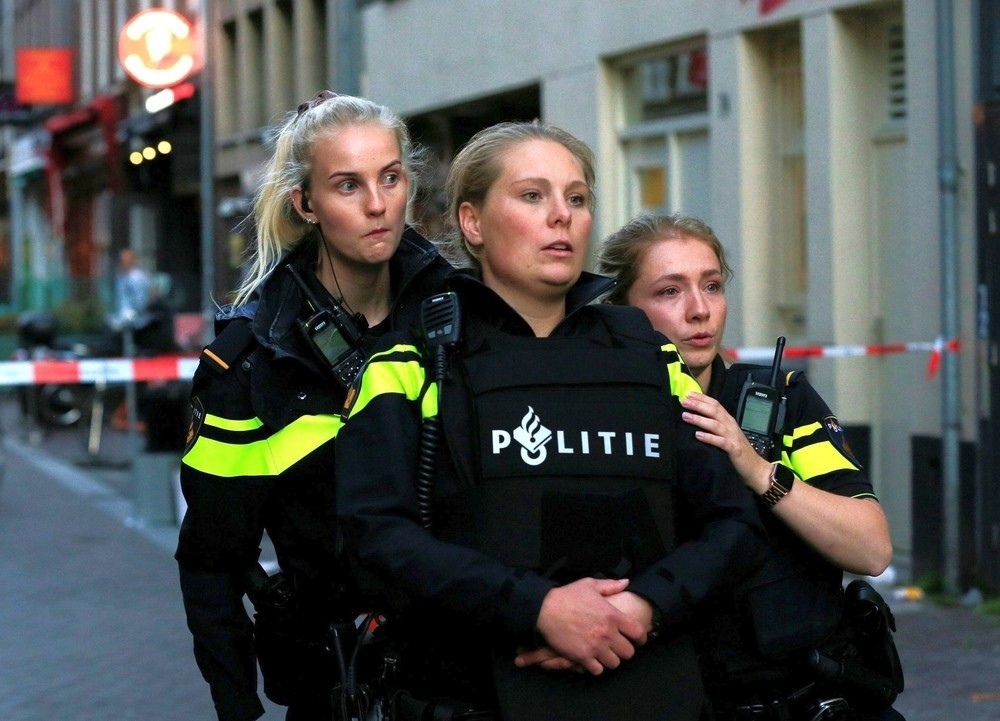 Сотрудницы полиции на месте нападения на журналиста-криминалиста Питера Р. де Вриса в Амстердаме, Нидерланды, 6 июля 2021 года.