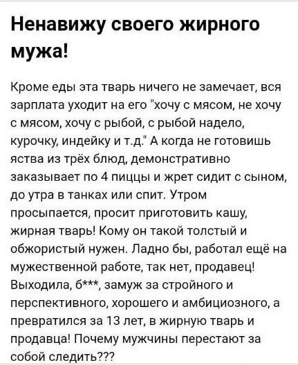 Требовательный к себе и окружающим, в том числе и к жене, но как понял, это ей воспринималось как "ну опять" и "зае.... В каждой ситуации что были до, пытался разобраться и найти компромисс. Но как оказалось, последний год со мной общались на от****сь и ничего уже не было нужно.