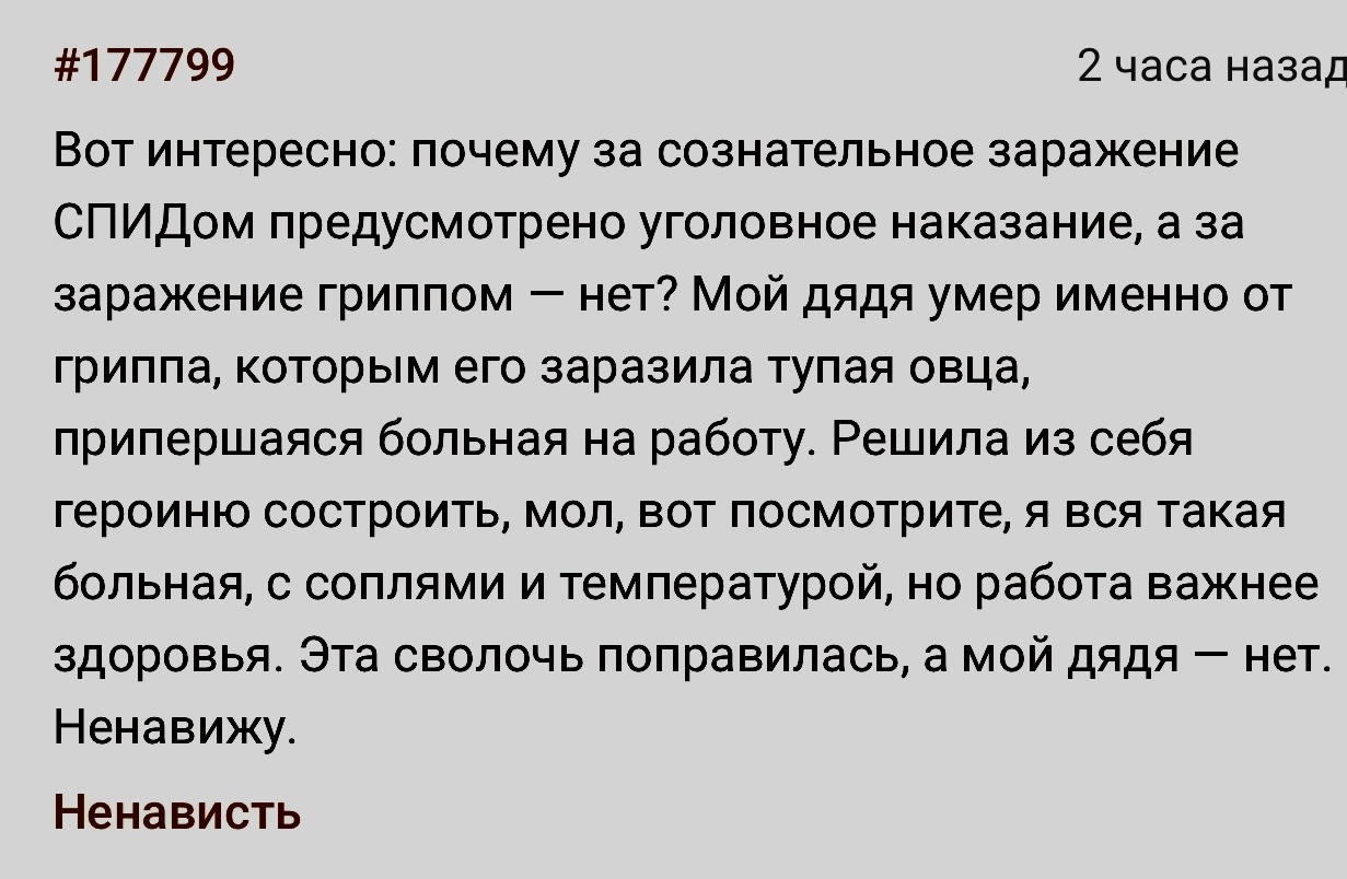 Хотелось бы рассказать одну интересную и поучительную историю, которая случилась у нас на работе. Дали нашим технологам задание – нужно было разработать метод очистки какого-то технологического раствора. Требовалось подобрать сорбент, реактивы, температуру и т.д. Принесли они исходный раствор лаборантке Жанне и попросили замерить содержание примесей. Жанна проанализировала и выдала, условно скажем, 1000 единиц на литр. Технологи принялись за дело и каждый день стали приносить Жанне пробы после очистки. Жанна замеряет – 1000 единиц. День проходит, два, а результат не меняется. Не идет очистка и все тут. Причем Жанна сама не знала, что идут эксперименты, думала, что анализирует какой-то готовый выходящий продукт. Прошла неделя и Жанна подумала – зачем делать одну и ту же работу, если итог всегда одинаков? Стала делать поначалу через день, потом раз в неделю, а результат выдавала 1000, потом вообще перестала проверять. Весь день дурака валяла, а отчет к вечеру всегда готов. Так прошло три месяца и Жанна ушла в отпуск. Технологи ждать не будут и передали пробы молодой лаборантке Лене. Та сделала анализ и выдала – 2 единицы. Технологи подумали – дура какая-то, работать просто еще не умеет. Не бывает такого - сегодня очистка не шла, а завтра сразу почти 100%. Попросили сделать анализ нашу опытную Тамару Сергеевну. Та сделала и выдает такой же результат - 2 единицы. Технологи в ступоре и ничего не могут понять. Передали тогда Тамаре Сергеевне все старые образцы замеренные ранее Жанной. Тамара две недели занималась этими пробами, и выяснили, что очистка пошла почти месяц назад, а полная идет уже как две недели. Технологам вкралось смутное сомнение и явно не в пользу Жанны. Решили пока никому не говорить и дождаться Жанну из отпуска. И вот она выходит. Ей дают три пробы на анализ, причем нумерация была такая, чтобы выглядело как продолжение предыдущих проб и не вызвало никаких подозрений. Вот только это были специально подготовленные для нее три разных по количеству примесей образца. Жанна не стала делать, как же после отпуска ведь нельзя сразу в работу вливаться. Организм должен адаптироваться к смене обстановки. Выдала результат 1000 и такая-то погрешность. Привыкла уже к халяве. Технологам все стало ясно. Они собрали все результаты в папку и понесли к нашему начальнику лаборатории. Начальник, конечно, охренел от такого. Жанну и её непосредственную руководительницу вызвали на ковер. Жанна отпиралась до последнего. Тогда ей предложили признаться и написать заявление «по собственному», а если нет, тогда уволят по статье. А со статьей потом устроиться куда-то будет проблема. Та расплакалась и во всем созналась. Просила оставить её, поскольку онажемать двоих детей. Этот случай дошел до начальника предприятия. Жанну не пожалели, она уволилась, а ее руководительницу перевели на нижестоящую должность, да и все по цепочке выше получили по шапке. Позже технологи стали подсовывать нам помимо проб еще и «троянцев». То есть они знают, какой должен быть настоящий результат и сравнивают с полученным. Мораль – халява не может быть вечной.