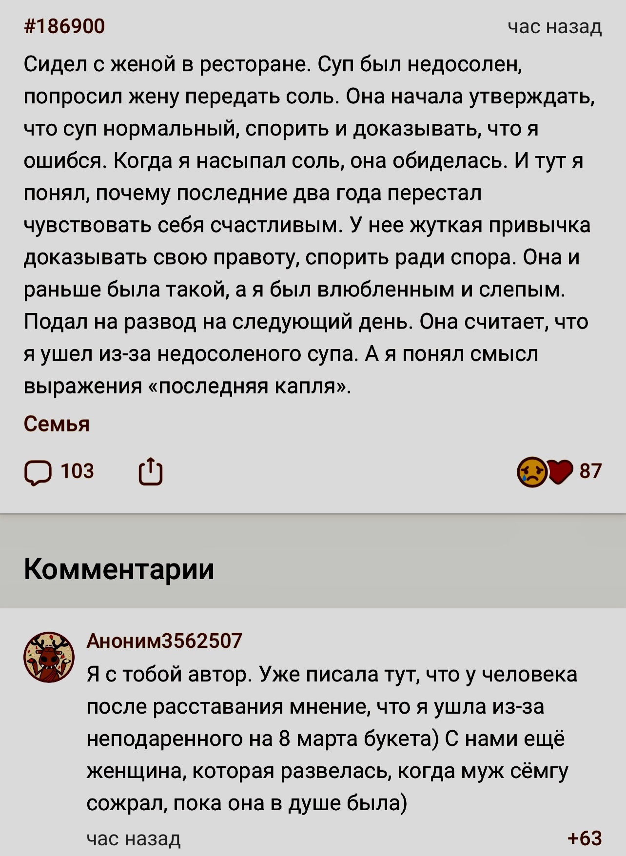 И при любой серьезной ссоре она мне говорит, что я такой же как свой отец и говорит что найдет лучше.