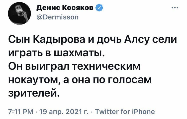 Во время прямого эфира Кадырова в Instagram 17 мая один из пользователей назвал его «шайтаном». Тот заметил комментарий, прочитал его вслух, сделал скриншот и заявил, что автор этой записи перестанет спать ночами, а «сейчас составит завещание и будет плакать». «Посмотрим, кто из нас шайтан. Я очень много шайтанов уничтожал и тебя тоже уничтожу», — сказал глава республики.