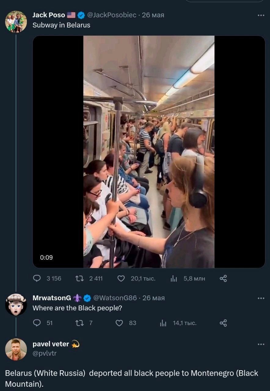 Беларусь (Бела Руссия) депортировала всех черных людей в Черногорию (Черная Гора)
