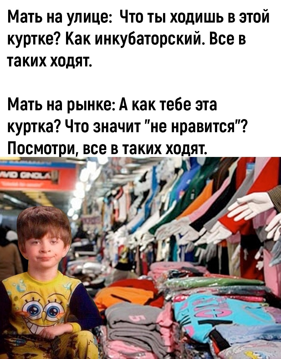На одном - "Вот ты с огорода продукты берешь, а помощи от тебя не дождёшься".