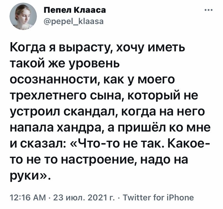 После каждого разговора с мамой мне приходится долгое время приходить в себя. Нет, мама меня не унижает, не говорит никакие гадости и прочее. Мама ведёт себя как ангел, полный сожаления о бедной судьбе своих детишек.