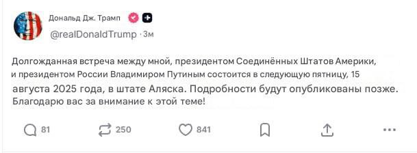 Итак, Трамп вчера заявил, что "Путин хочет мира. И Зеленский хочет мира". И это правда, различаются лишь условия, на которых они хотят этот самый мир.