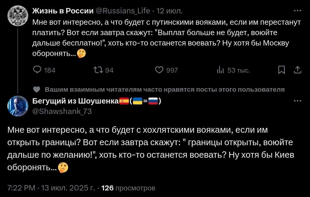 Итак, Вчера Дональд пообещал наложить 100% вторичные пошлины на всех покупателей российской нефти, если Россия не договорится с Украиной за 50 дней. То есть, до:
