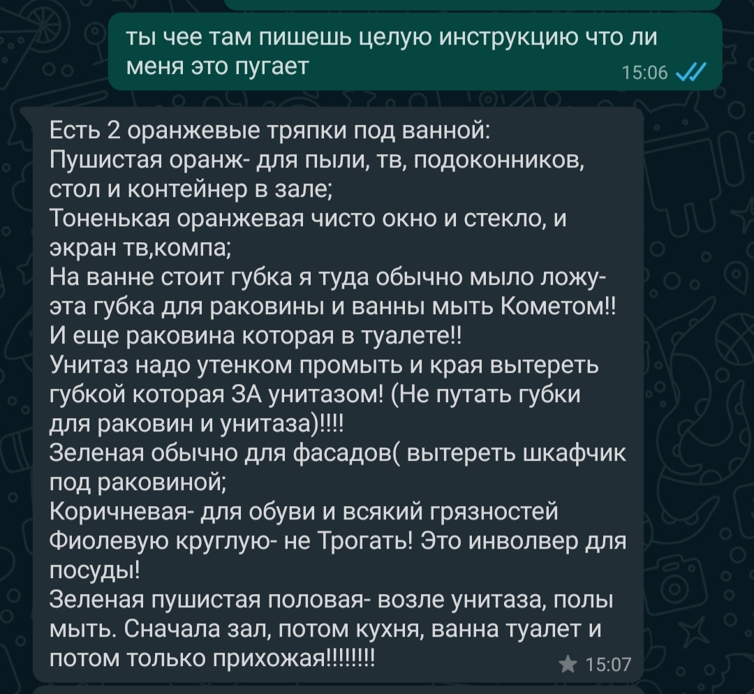 Жены с ребенком нет дома, к их приезду решил прибраться. Спросил как, ответ на фото.