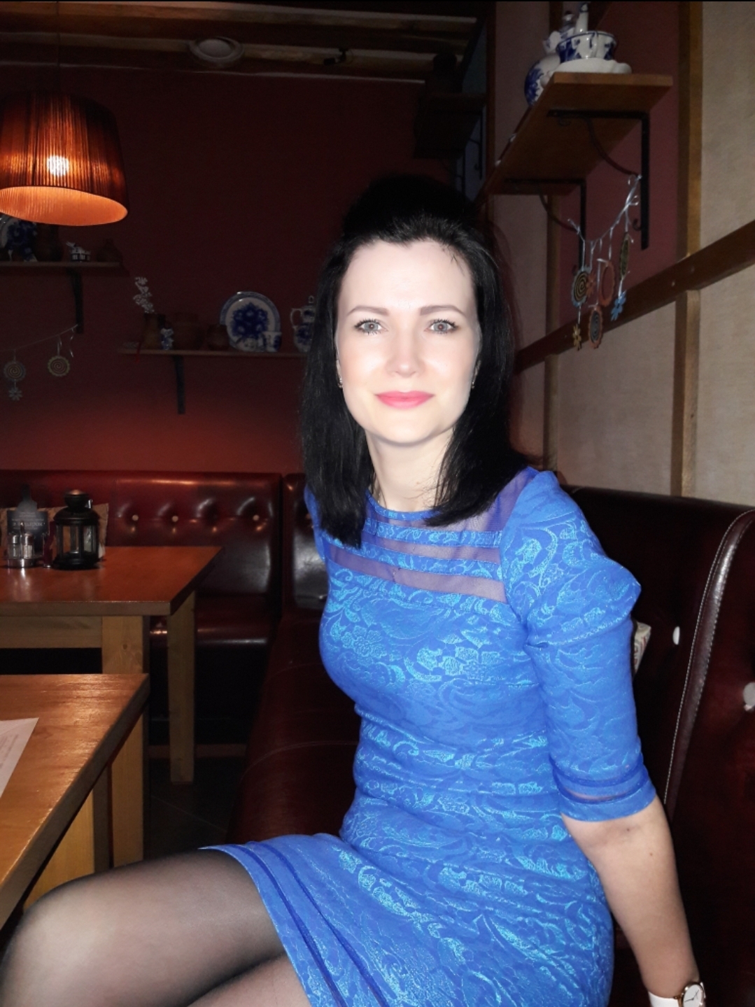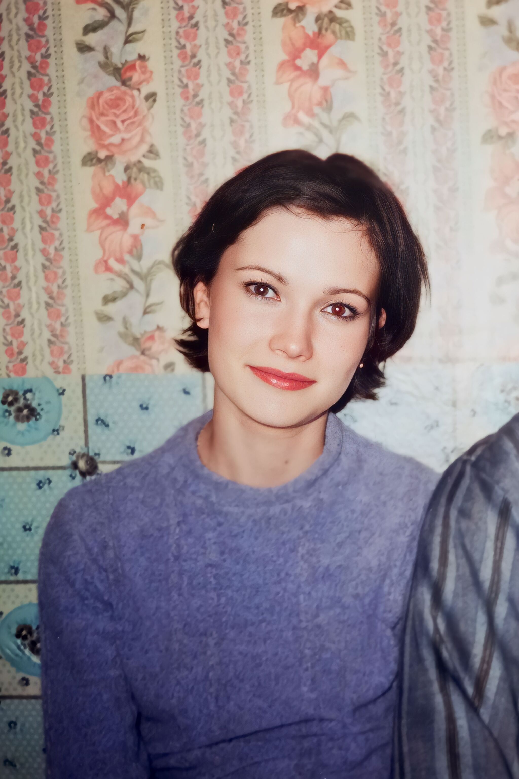 Женщина чуть улыбается: