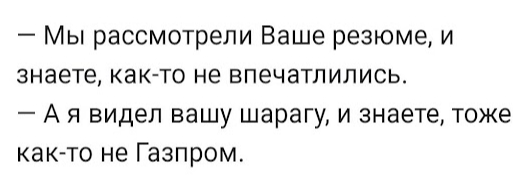 Они переглянулись. Молчат. Мне захотелось предложить им перекинуться в карты на то, брать меня на работу или нет. Но я не стал. Короче говоря, мне стало жаль этих юных HRок и я просто ушёл. Внизу у входа стоял мажор и курил.