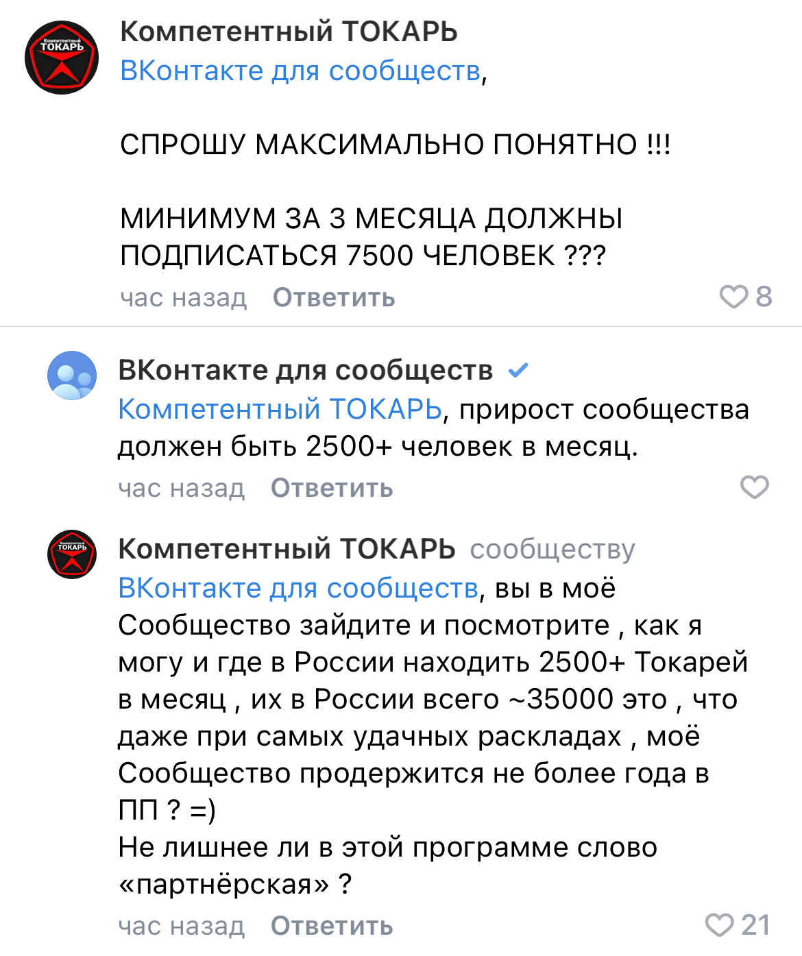 Теперь чтобы зарабатывать деньги на рекламной сети от ВК, паблики должны показывать ежемесячный прирост аудитории в 2500 человек. Абсурдность этого нововведения можно увидеть на этом скрине.