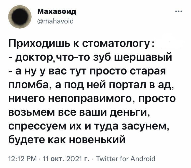 - Почти, - улыбнулся он, - мамина знакомая стоматолог поставила мне три пломбы за 3500, мимо кассы.