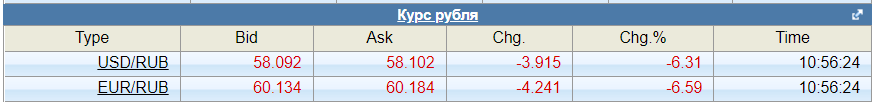 На рынке Форекс также реакция на новость не прослеживается. Текущее значение курса рубля: 58,325. Чуть ниже, чем закрытие ММВБ.