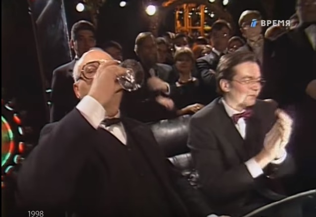 Если в 23:46:54 включить выпуск "Что? Где? Когда?" от 12.12.1998, тогда ровно в полночь Ворошилов скажет: За ваше здоровье и за мое очко!