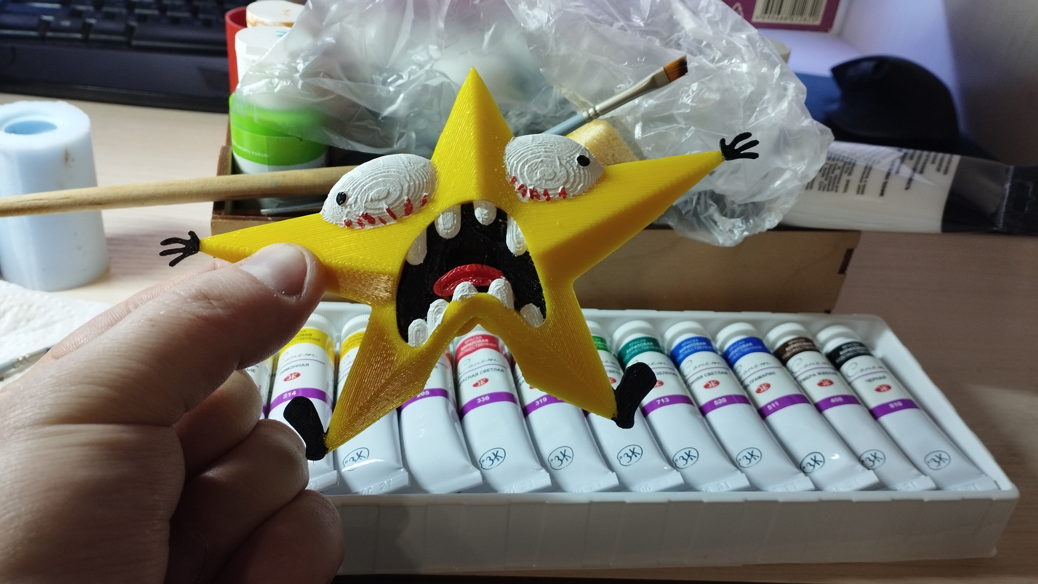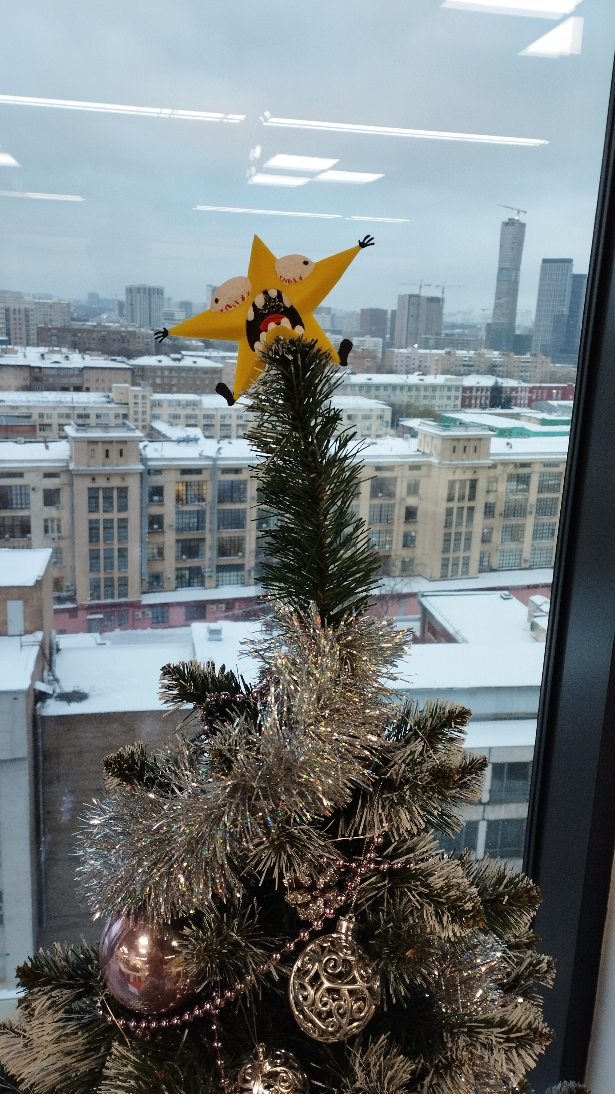 Как-то все не было повода напечатать звезду, т.к. домой жена против. И вот на работе поставили елку. Скинутый в общем чате мем всем зашел и было решено украсить елку.