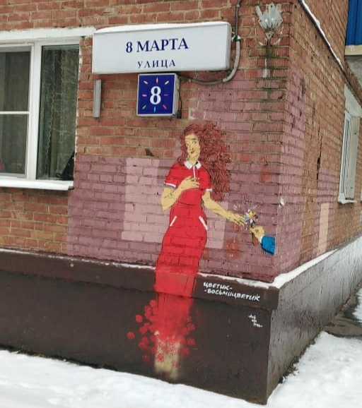 Кто-то нарисовал граффити - поздравление буквально за пару часов утром 8 Марта.